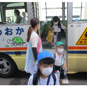 バスで帰る子どもたち、お迎えの子どもたち。