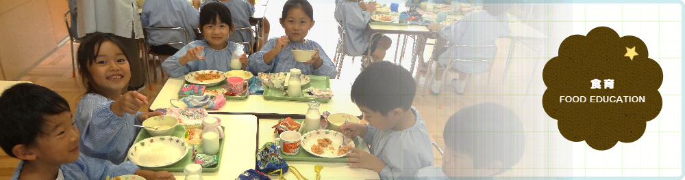 ②月曜日から金曜日まで毎日、管理栄養士の献立による給食で、幼児期から望ましい食習慣形成をめざしています。