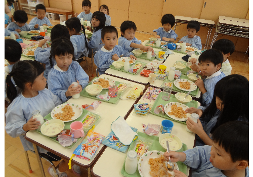 ・誕生日を迎えた子どもが、その日の献立を放送します。