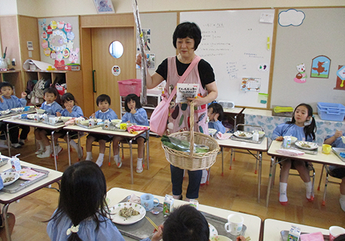 ・仲良しの子がおいしそうに食べている様子を見たり、園庭で育てた野菜を調理したりといった経験を通して食べることを楽しめる環境づくりに力を入れています。
